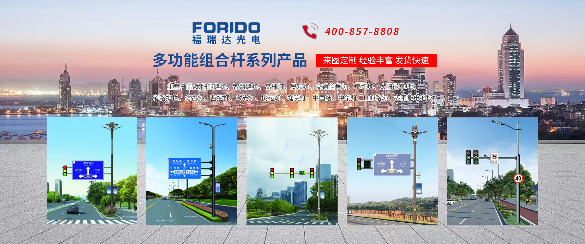揚州福瑞達光電科技有限公司位于淮左名都歷史文化名城、中國路燈制造基地揚州市北郊菱塘工業(yè)園,公司占地面積76000平方米,注冊資金10518萬元,擁有高級技術(shù)嫻熟的員工280多人,擁有大型折彎機、激光切割、數(shù)控注塑機、壓鑄機、自動埋弧焊、氣焊、彩色粉末靜電噴塑等大型自動化設(shè)備,我公司是一家集設(shè)計、研發(fā)、生產(chǎn)、銷售、施工安裝服務為一體的戶外交通照明產(chǎn)品制造商,主要生產(chǎn)智慧路燈、太陽能路燈、LED路燈、高桿燈、景觀燈、交通信號燈、交通標志牌、通信鐵塔、路跨鋼結(jié)構(gòu)、公交站臺、太陽能光伏組件、景點亮化、樓宇亮化工程的設(shè)計施工等。公司秉承開拓創(chuàng)新、銳意進取、精誠服務的企業(yè)精神,堅持以“誠信為本、技術(shù)為先、服務是金”的合作理念,我們憑借先進的制造工藝、優(yōu)質(zhì)的產(chǎn)品質(zhì)量、合理的市場價格和完善的售后服務贏得了廣闊的市場和客戶的信賴。 我公司已通過ISO9001質(zhì)量體系認證、ISO14001環(huán)境管理體認證,CQC產(chǎn)品認證,中國節(jié)能產(chǎn)品認證,通過“CCC”強制性產(chǎn)品認證,具有市政總承包,照明,交安,設(shè)計等資質(zhì)···